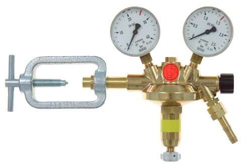Cylinder pressure reducer Vulkan F10/25 Acetylene DIN 477-1, 0 - 1.5 bar according to ISO 2503, Class 2, single-stage design, tested for burnout safety with safety pressure gauges according to DIN EN ISO 5171, with shut-off valve. Maximum inlet pressure: 25 bar. Output pressure: adjustable 0 - 1.5 bar. Maximum output: 8.5 Nm³/h at 1.5 bar outlet pressure. Inlet: Bracket according to DIN 477-1 No. 3. Outlet (optional special outlet): G3/8LHk x 9 mm nozzle according to EN 560. Inlet pressure gauge: 0 - 40/26 bar. Outlet pressure gauge: 0 - 2.5/1.5 bar. Width x Height x Depth: 290 x 190 x 75 mm. NOTE: Cylinder pressure reducers are manufactured according to ISO 2503 and not for use with ISO collars. 14114 suitable/approved! This cylinder pressure reducer is available in the following versions, among others: Special outlet screw connection: Standard: G3/8 LHk x 9 mm nozzle according to EN 560 Optional: Order number Outlet screw connection 209000 Hose nozzle G3/8" LHk x 9mm 209000-815 Hose nozzle G3/8" LHk x 6mm 209000-838 Hose nozzle G3/8" LHk x 4mm
