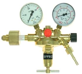 Vulkan F15/200 Effect LabLine nitrogen cylinder pressure reducer 0-1.5 bar, fully chrome-plated with a metal diaphragm for gas purity 5.0, with pre-pressure compensation for constant back pressure under all operating conditions