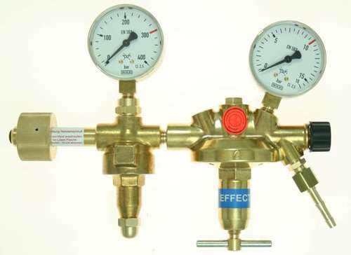 Cylinder pressure reducer Vulkan F10/2 300 Effect forming gas DIN 477-5, 0 - 10 bar according to DIN EN ISO 2503, two-stage design, with pre-pressure compensation for constant back pressure with falling pre-pressure, with safety pressure gauges according to DIN EN ISO 5171, with shut-off valve. Inlet pressure max: 300 bar. Outlet pressure: 0 - 10 bar adjustable. Output max: 48 Nm³/h at 10 bar back pressure. Inlet: W30x2LH UM DIN 477-5 No. 57. Outlet: G3/8LHk x 9mm nozzle according to DIN EN 560. Inlet pressure gauge: 0 - 400/300 bar. Outlet pressure gauge: 0 - 16/10 bar. Width x Height x Depth: 240 x 190 x 75 mm. Important note for 300 bar pressure reducers - Please Check your cylinder connection! Cylinder pressure regulators for 300 bar have a manual connection according to DIN 477 Part 5 and are NOT backward compatible. This means they do NOT fit cylinders with a maximum filling pressure of 200 bar! If necessary, see our following tutorial, 3: Difference between 200 bar and 300 bar pressure regulators. This cylinder pressure reducer is available in the following versions, among others: Gas purity/membrane: Standard: - for technical gases up to a gas purity of 4.5 with standard membrane Optional (surcharge): - for pure gases up to a gas purity of 5.0 with stainless steel membrane SS321 (1.4541) Special outlet screw connection: Standard: - hose nozzle G3/8" LHk x 9mm Options (surcharge): Order number Gas purity/membrane Outlet screw connection 304820 for technical gases up to 4.5, with standard membrane Hose nozzle G3/8" LHk x 9mm 304820-815 for technical gases up to 4.5, with standard membrane Hose nozzle G3/8" LHk x 6mm 304820-814 for technical gases up to 4.5, with standard membrane External thread G3/8" LHk according to EN 560 304820-830 for technical gases up to 4.5, with standard membrane, external thread G1/2" LHk according to EN 560 304820-6M for technical gases up to 4.5, with standard membrane, compression fitting VA 6mm 304820-8M for technical gases up to 4.5, with standard membrane, compression fitting VA 8mm 304820-10M for technical gases up to 4.5, with standard membrane, compression fitting VA 10mm 304820-12M for technical gases up to 4.5, with standard membrane, compression fitting VA 12mm 304820-2 for technical gases up to 4.5, with standard membrane, compression fitting VA 1/8" 304820-4 for technical gases up to 4.5, with standard membrane, compression fitting VA 1/4" 304820-MM-815 for pure gases up to 5.0, with metal diaphragm SS321 (1.4541) hose nozzle G3/8" LHk x 6mm 304820-MM for pure gases up to 5.0, with metal diaphragm SS321 (1.4541) hose nozzle G3/8" LHk x 9mm 304820-MM-814 for pure gases up to 5.0, with metal diaphragm SS321 (1.4541) external thread G3/8" LHk according to EN 560 304820-MM-830 for pure gases up to 5.0, with metal diaphragm SS321 (1.4541) external thread G1/2" LHk according to EN 560 304820-MM-6M for pure gases up to 5.0, with metal diaphragm SS321 (1.4541) compression fitting VA 6mm 304820-MM-8M for pure gases up to 5.0, with metal membrane SS321 (1.4541) compression fitting VA 8mm 304820-MM-10M for pure gases up to 5.0, with metal membrane SS321 (1.4541) compression fitting VA 10mm 304820-MM-12M for pure gases up to 5.0, with metal membrane SS321 (1.4541) compression fitting VA 12mm 304820-MM-2 for pure gases up to 5.0, with metal membrane SS321 (1.4541) compression fitting VA 1/8" 304820-MM-4 for pure gases up to 5.0, with metal membrane SS321 (1.4541) compression fitting VA 1/4"