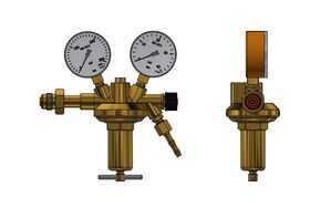 acc. to ISO 2503, class 5, single stage, with high pressure compensation for constant working pressure, with safety gauges acc. to ISO 5171, with shut off valve,inlet pressure max.: 200 bar
