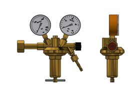 acc. to ISO 2503, class 5, single stage, with high pressure compensation for constant working pressure, with safety gauges acc. to ISO 5171, with shut off valve,inlet pressure max.: 200 bar