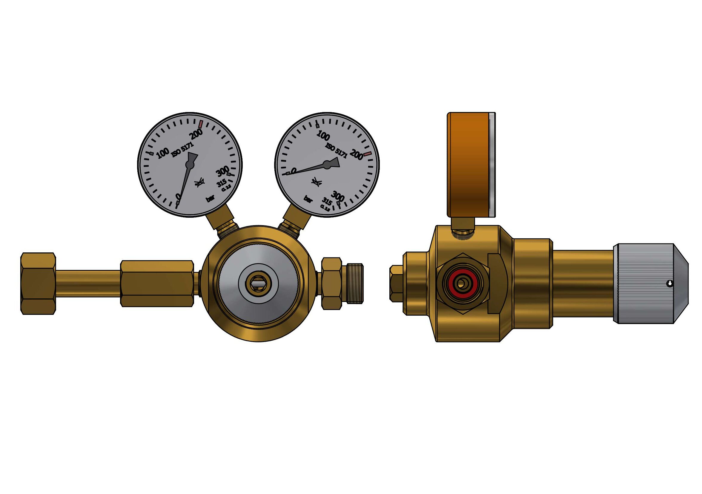 acc. to ISO 2503, single stage with safety gauges acc. to EN562inlet pressure max:200 bar