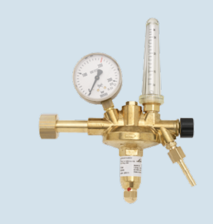 acc to DIN EN ISO 2503, class 10, single stage, with flowmeter for exact control of the flow in Nl/min, with high pressure compensation for constant working pressure with safety gauge acc. to ISO 5171, with shut off valveinlet pressure max: 200 bar