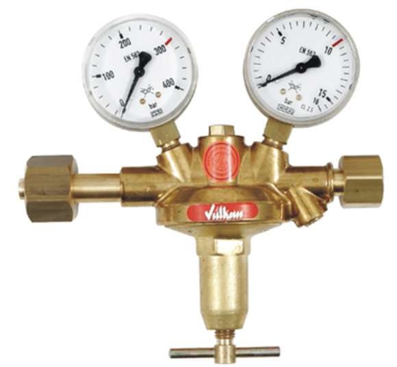 Main pressure reducer Vulkan H10/300 Effect inert gases for SE 10/300, 0 - 10 bar according to ISO 7291, single-stage design, with safety pressure gauges according to DIN EN ISO 5171, Maximum inlet pressure: 300 bar, Output pressure: 0 - 10 bar adjustable, Maximum output: 50 Nm³/h compressed air at 10 bar outlet pressure. Inlet: M24x1.5 RHf U-nut, Outlet: G1/2 RHk U-nut according to EN 560, Inlet pressure gauge: 0 - 400/300 bar, Outlet pressure gauge: 0 - 16/10 bar, Width x Height x Depth: 210 x 190 x 75 mm *****NOTE***** Replacement pressure reducer for stationary single cylinder system SE10. This pressure reducer does NOT fit directly onto a cylinder bundle on the connection side! Please state the system number when ordering. This main pressure reducer is available in the following versions, among others: Gas purity/diaphragm: Standard: - for technical gases up to a purity of 4.5 with a standard membrane. Optional (surcharge): - for pure gases up to a purity of 5.0 with a stainless steel membrane SS321 (1.4541).