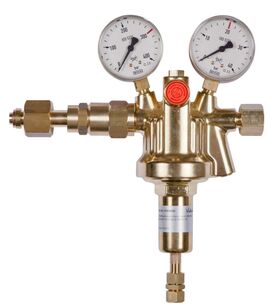Main fin pressure reducer Vulkan HR20/300 EFFECT Helium, for EB/BS 80/300 according to ISO 7291, single-stage design, with pre-pressure compensation for constant outlet pressure with falling pre-pressure, burnout safety tested according to ISO 7291, with safety gauges according to ISO 5171, maximum inlet pressure: 300 bar, outlet pressure: 0 - 20 bar adjustable, maximum output: 170 Nm³/h air at 20 bar outlet pressure. Inlet: M24x1.5 RHf U-nut, outlet: G1/2 RHk U-nut according to DIN EN 560, inlet pressure gauge: 0 - 400/300 bar, outlet pressure gauge: 0 - 40/20 bar, width x height x depth: 240 x 240 x 85 mm *****NOTE***** Replacement pressure reducer for stationary Single bundle systems EB80 and base stations BS80. This pressure reducer does NOT fit directly onto a cylinder bundle on the connection side! Please specify the system number when ordering! This main ribbed pressure reducer is available in the following versions, among others: Gas purity/diaphragm: Standard: - for technical gases up to a purity of 4.5 with a standard membrane. Optional (surcharge): - for pure gases up to a purity of 5.0 with a stainless steel membrane SS321 (1.4541).