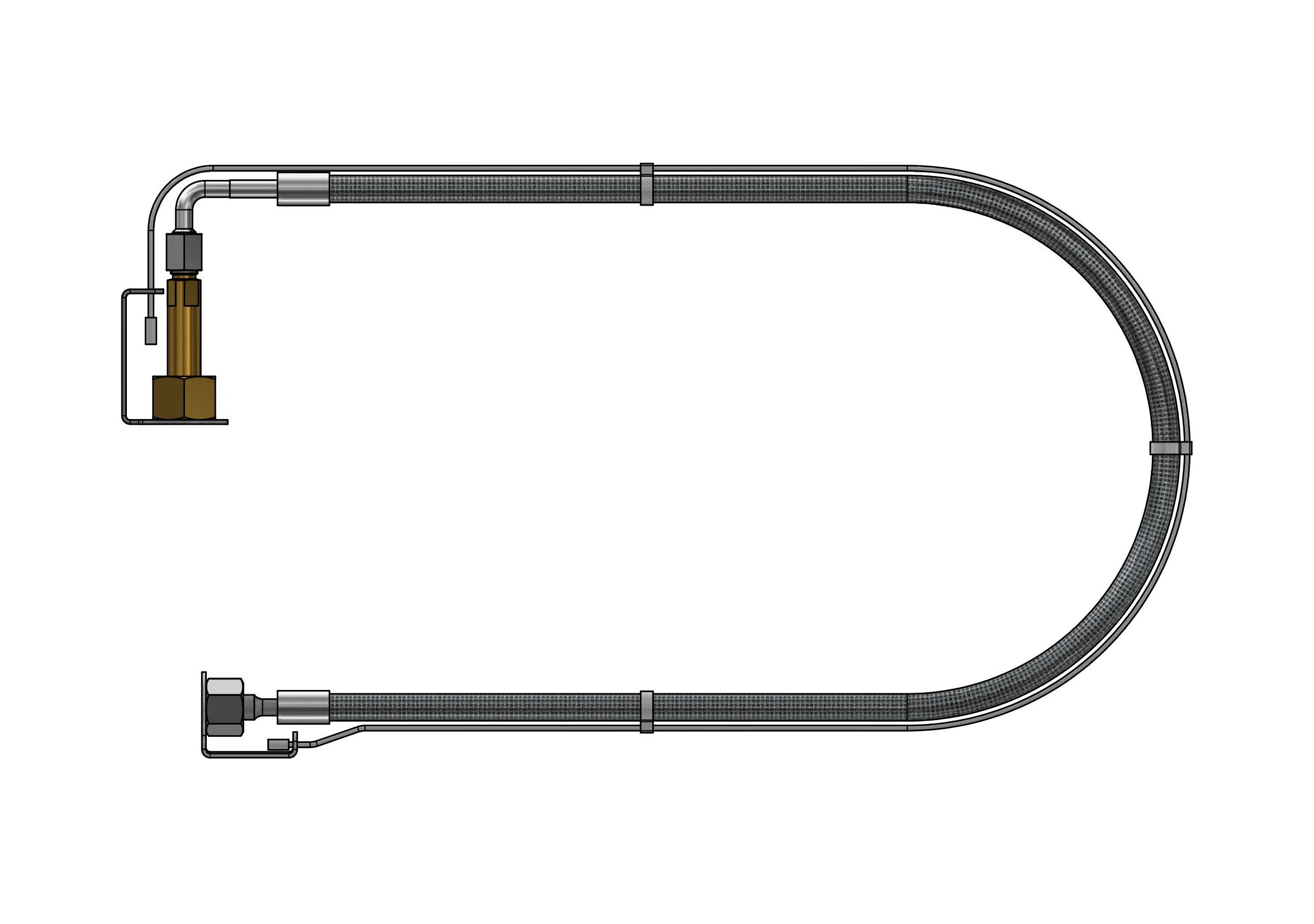 flexible Metall hose with two anti kink springs and anti whip cable assembled complete mounted on hose, length: 1.000 mminlet W21,8x1/14RHf nut acc. to DIN 477-1, No. 6, with 90° angle