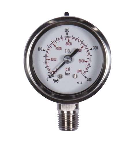 Pressure gauge PI 50 mm Bourdon tube 1/4 NPT-M at 6 o'clock Kl 2.5 BC Housing diameter: 50 mm Nickel-plated brass