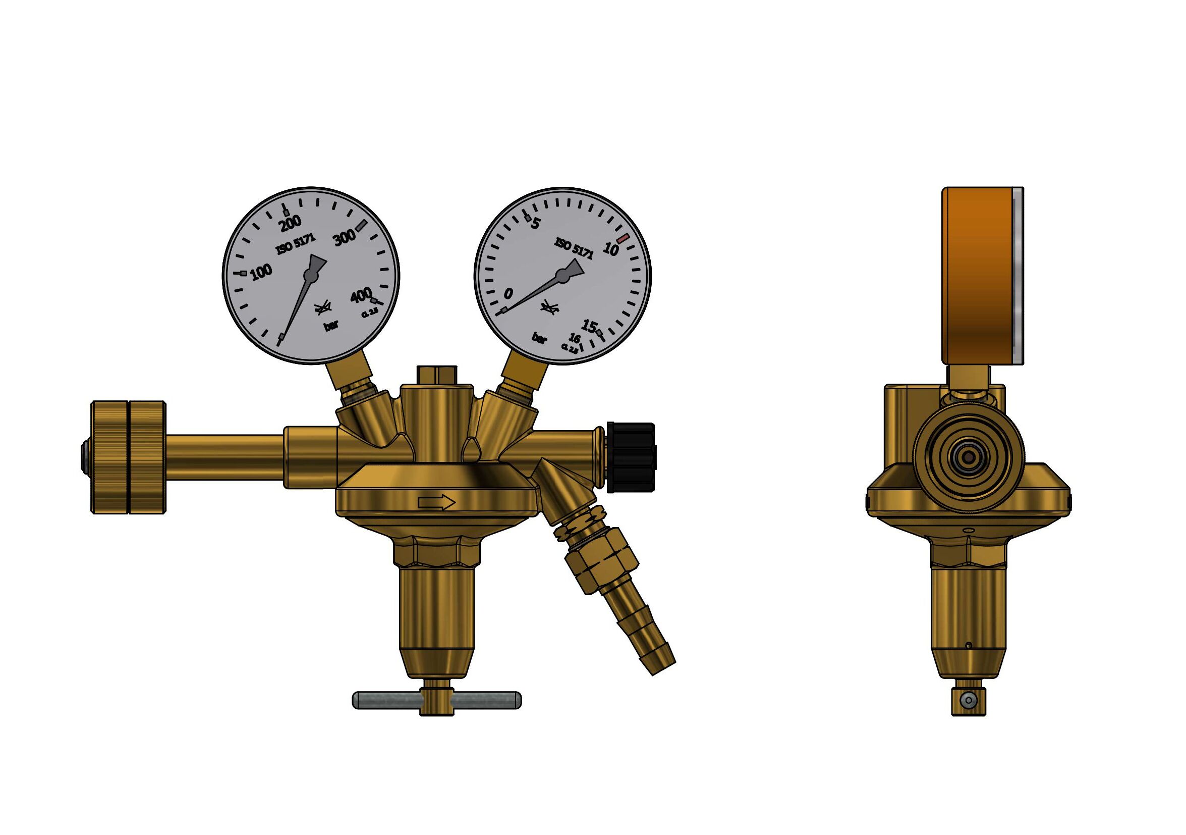 acc. to ISO 2503, class3, with high pressure compensation, single stage with safety gauges acc. to DIN ISO 5171inlet pressure max:300 bar
