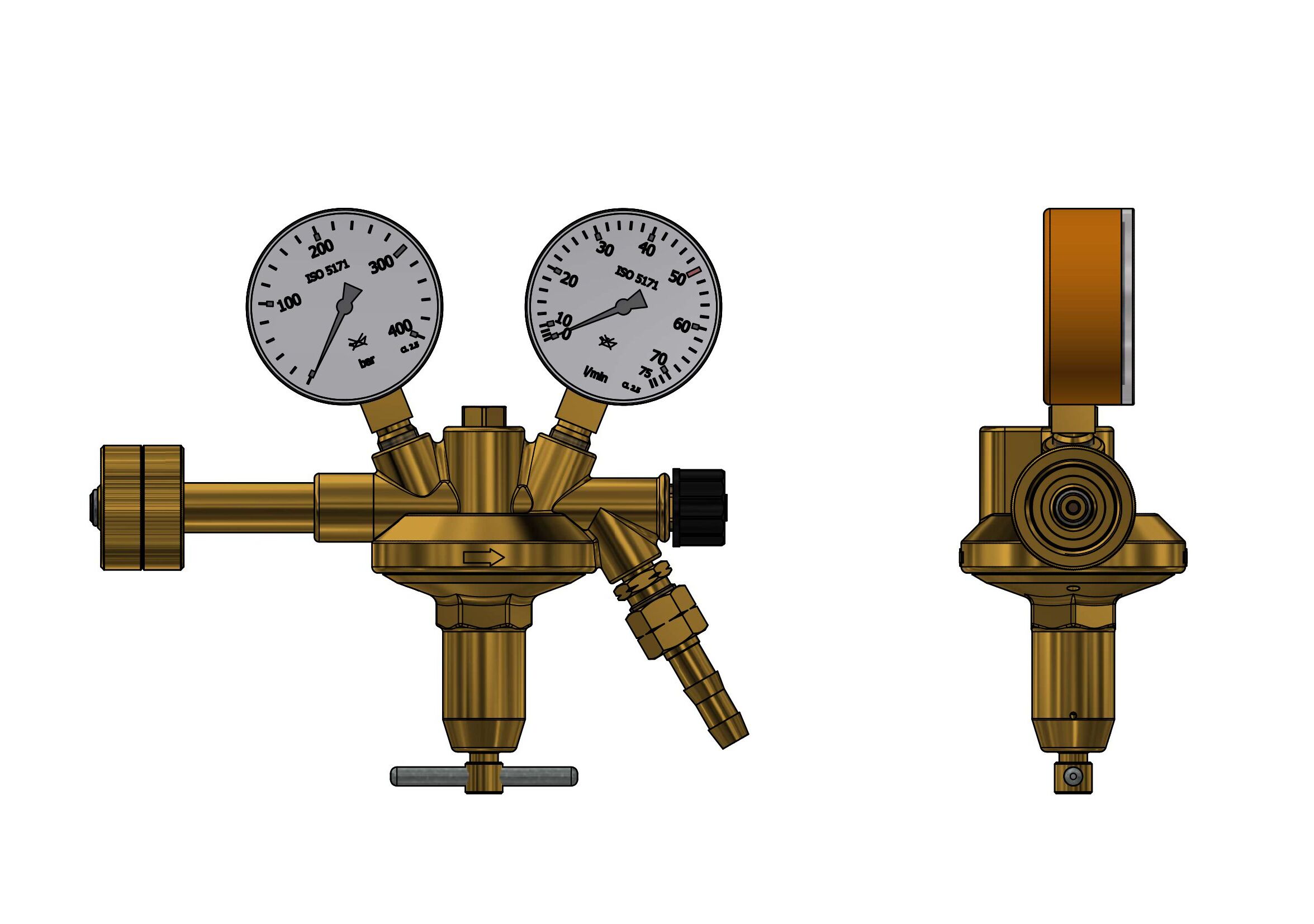 outlet pressure: 0 - 50 Nl/min. (0 – 10 bar) adjustable