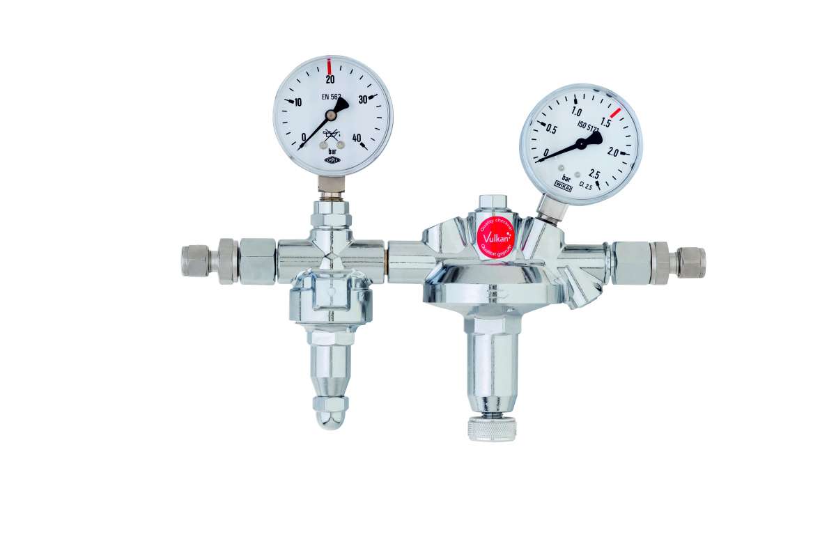 Vulkan L15/2 LabLine CO2/Argon line pressure reducer 0-1.5 bar, fully chrome-plated, with metal diaphragm for gas purity 5.0