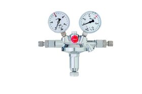 single-stage design, with safety gauges according to DIN EN ISO 5171, maximum inlet pressure: 20 bar, adjustable outlet pressure: 0-1