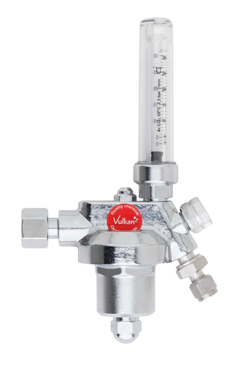 Tapping Points: Pressure Reducer Vulkan E10F Flowmeter LabLine Forming Gas 34 Nl/min. Completely chrome-plated with metal diaphragms for gas purity 5.0, based on ISO 2503