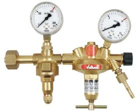Compact two-stage cylinder pressure regulator type Sigma II in accordance with ISO 2503 for technical, medical, corrosive, laboratory and high-purity gases. Compact design and high regulation accuracy. Absolutely constant downstream pressure at decreasing cylinder pressure due to two regulation stages. Right-hand inlet: cylinder connection per DIN 477 Part 1 or Part 5; outlet: compression fitting, alternatively 1/4" NPT-F thread. Upstream and downstream pressure gauges Ø 50 mm to DIN 837. 50 µm inlet filter. One blow-off valve per stage. Max gas purity 6.0; max inlet pressure up to 300 bar (depending on standard); control ranges from 1.5 bar to 30 bar (special ranges up to 60 bar available); temperature range -40 °C to +70 °C; body materials: chrome-plated brass, stainless steel or Monel; diaphragms: stainless steel or Hastelloy; ECD compatible; leak rate < 1 x 10^-8 (He); ATEX and PED compliant.