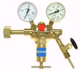 Compact two-stage cylinder pressure regulator type Sigma II in accordance with ISO 2503 for technical, medical, corrosive, laboratory and high-purity gases. Compact design and high regulation accuracy. Absolutely constant downstream pressure at decreasing cylinder pressure due to two regulation stages. Right-hand inlet: cylinder connection per DIN 477 Part 1 or Part 5; outlet: compression fitting, alternatively 1/4" NPT-F thread. Upstream and downstream pressure gauges Ø 50 mm to DIN 837. 50 µm inlet filter. One blow-off valve per stage. Max gas purity 6.0; max inlet pressure up to 300 bar (depending on standard); control ranges from 1.5 bar to 30 bar (special ranges up to 60 bar available); temperature range -40 °C to +70 °C; body materials: chrome-plated brass, stainless steel or Monel; diaphragms: stainless steel or Hastelloy; ECD compatible; leak rate < 1 x 10^-8 (He); ATEX and PED compliant.