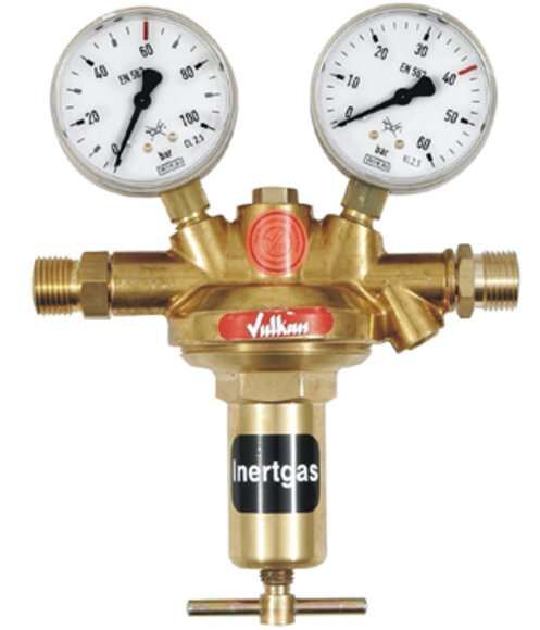 Compact two-stage cylinder pressure regulator type Sigma II in accordance with ISO 2503 for technical, medical, corrosive, laboratory and high-purity gases. Compact design and high regulation accuracy. Absolutely constant downstream pressure at decreasing cylinder pressure due to two regulation stages. Right-hand inlet: cylinder connection per DIN 477 Part 1 or Part 5; outlet: compression fitting, alternatively 1/4" NPT-F thread. Upstream and downstream pressure gauges Ø 50 mm to DIN 837. 50 µm inlet filter. One blow-off valve per stage. Max gas purity 6.0; max inlet pressure up to 300 bar (depending on standard); control ranges from 1.5 bar to 30 bar (special ranges up to 60 bar available); temperature range -40 °C to +70 °C; body materials: chrome-plated brass, stainless steel or Monel; diaphragms: stainless steel or Hastelloy; ECD compatible; leak rate < 1 x 10^-8 (He); ATEX and PED compliant.