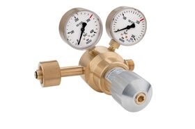 Compact two-stage cylinder pressure regulator type Sigma II in accordance with ISO 2503 for technical, medical, corrosive, laboratory and high-purity gases. Compact design and high regulation accuracy. Absolutely constant downstream pressure at decreasing cylinder pressure due to two regulation stages. Right-hand inlet: cylinder connection per DIN 477 Part 1 or Part 5; outlet: compression fitting, alternatively 1/4" NPT-F thread. Upstream and downstream pressure gauges Ø 50 mm to DIN 837. 50 µm inlet filter. One blow-off valve per stage. Max gas purity 6.0; max inlet pressure up to 300 bar (depending on standard); control ranges from 1.5 bar to 30 bar (special ranges up to 60 bar available); temperature range -40 °C to +70 °C; body materials: chrome-plated brass, stainless steel or Monel; diaphragms: stainless steel or Hastelloy; ECD compatible; leak rate < 1 x 10^-8 (He); ATEX and PED compliant.